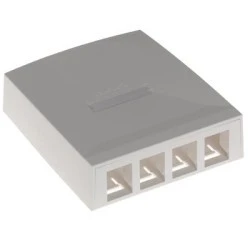 Gniazdo natynkowe Synergy FTP kat. 6A MOLEX SSY-00015-02 to biała, 4-portowa obudowa do montażu naściennego, na korytach kablowych lub bezpośrednio na meblach, przeznaczona do instalacji modułów DataGate w wersji nieekranowanej kat. 5e/6 oraz ekranowanej kat. 6A (moduły zamawiane osobno).