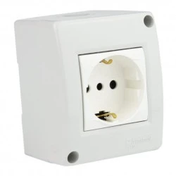 Gniazdo natynkowe Schuko IP40 Gniazdo elektryczne w systemie Schuko niemieckim (typ F) do montażu natynkowego. Wysoki stopień ochrony (IP40) gwarantuje odporność na działanie pyłów i bryzgów wody. Gniazdo sprawdzi się zarówno w garażu jak i warsztatach, halach produkcyjnych, magazynach itp. zastosowanie do montażu natynkowego typ gniazda Schuko / Typ F maksymalne napięcie 230V maksymalny prąd 16A częstotliwość 50Hz stopień ochrony IP40 montaż natynkowy kolor obudowa - szary RAL 7035 gniazdo - biały wlot kablowy 2 x otwór wybijany: - 1x φ 23mm - góra - 1 x φ 23mm - tył 1 x membrana gumowa: - 1x φ 23mm - dół wymiary 85 x 70 x 58 mm materiał obudowy tworzywo sztuczne producent Malanvil numer artykułu 1470.D kod EAN 8017521081793