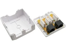 Prosty i szybki montaż do ściany lub biurka. Wyposażone w gniazda RJ45 oraz uniwersalne złącza szczelinowe kompatybilne z narzędziem LSA. Przyłącznanie kabli w sekwencjach 568A/B. Nieobjęte gwarancją systemową.