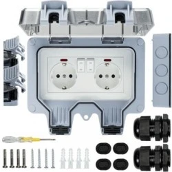 GNIAZDO OGRODOWE ZEWNĘTRZNE PODWÓJNE WODOSZCZELNE GNIAZDKO Z PRZEŁĄCZNIKIEM