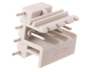 Obudowa podstawowa płytki drukowanej, przekrój znamionowy: 2,5 mm², kolor: jasnoszary, prąd znamionowy: 12 A, napięcie znamionowe (III/2): 320 V, powierzchnia styku: cynowy, rodzaj styku: Styk męski, liczba potencjałów: 4, Liczba rzędów: 1, Liczba pinów na rząd: 4, ilość przyłączy: 4, rodzina produktów: MSTBO 2,5/..-G1L, wymiar rastra: 5 mm, montaż: Lutowanie na fali, układ pinów: Liniowe ustawienie kołków, długość pinu [P]: 3,5 mm, Rygiel: bez, rodzaj opakowania: zapakowany w karton, Produkt z wyprowadzeniem bocznym pinów po lewej stronie