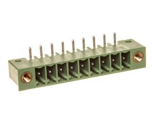 Obudowa podstawowa płytki drukowanej, przekrój znamionowy: 1,5 mm², kolor: zielony, prąd znamionowy: 8 A, napięcie znamionowe (III/2): 160 V, powierzchnia styku: cynowy, rodzaj styku: Styk męski, liczba potencjałów: 9, Liczba rzędów: 1, Liczba pinów na rząd: 9, ilość przyłączy: 9, rodzina produktów: MC 1,5/..-GF-LR, wymiar rastra: 3,5 mm, montaż: Lutowanie na fali, układ pinów: Liniowe ustawienie kołków, długość pinu [P]: 3,4 mm, system wtyków: MINI COMBICON, Ustawienie przodu wtyku: Standard, Rygiel: Ryglowanie zatrzaskowe, rodzaj mocowania: Kołnierz z gwintowanymi otworami Lock & Release, rodzaj opakowania: zapakowany w karton