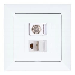 Gniazdo podtynkowe typu F + gn. RJ‑45 Pola białe, 33026