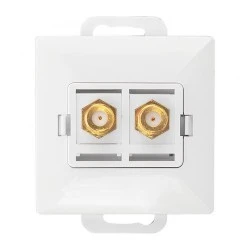 Gniazdo antenowe, podwójne typu F, podynkowe. Umożliwia podłączenie dwóch przewodów ze złączem typu F. Należy stosować wewnątrz pomieszczeń (IP20).