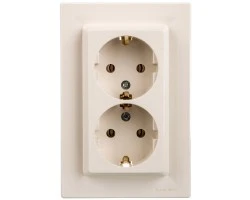 Gniazdo podwójne SCHUKO w kolorze kremowym, serii Asfora, marki Schneider Electric, o numerze katalogowym EPH9900123. Długie i solidne pazury utrzymywane są za pomocą metalowych prowadnic w pozycji pionowej, co ułatwia montaż oraz zwiększa bezpieczeństwo podczas mocowan ia mechanizmu w puszce instalacyjnej. Zaciski w gniazdach zasilających oznaczone są w czytelny sposób oraz umieszczone są w jednej linii, dzięki czemu znacznie prostsze staje się ułożenie podłączonych kabli przed zamocowaniem gniazda w puszce instalacyjnej (zmniejszenie efektu prężenia przewodów). Zwarta i solidna zabudowa mechanizmu minimalizuje ryzyko przypadkowego kontaktu z elementami pod napięciem i uniemożliwia wypadanie elementów nawet przy całkowitym odkręceniu śrub zacisków. Dodatkowo, solidna ramka montażowa wykonana z galwa nizowanego metalu posiada nacięcia ułatwiające pozycjonowanie. Produkt może być instalowany w ramkach wielokrotnych. Asfora to pełna gama wysokiej jakości łączników i gniazd o eleganckim kształcie oraz szerokiej funkcjonalności. Dostepna jest w 6 kolorach: biały, kremow y, aluminium, stal, brąz oraz antracyt, co pozwala stworzyć 36 kombinacji kolorystycznych. Prosta forma, szeroki asortyment oraz szybka i łatwa instalacja to zalety serii Asfora.