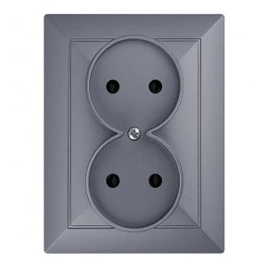 Podwójne gniazdo typu francuskiego, podtynkowe 2x2P. Należy stosować wewnątrz pomieszczeń (IP20).