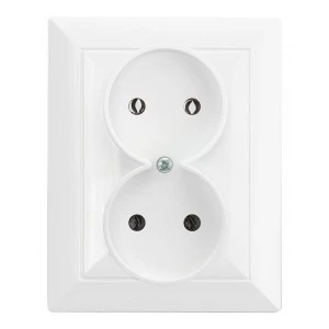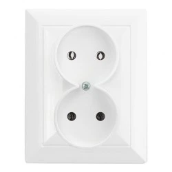 Podwójne gniazdo typu francuskiego, podtynkowe 2x2P. Należy stosować wewnątrz pomieszczeń (IP20).