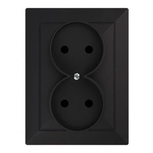 Podwójne gniazdo typu francuskiego, podtynkowe 2x2P. Należy stosować wewnątrz pomieszczeń (IP20).