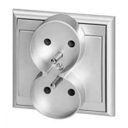 Podwójne gniazdo typu francuskiego do systemu ramkowego, podtynkowe 2x2P+Z. Należy stosować wewnątrz pomieszczeń (IP20).