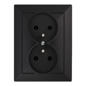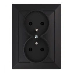 Podwójne gniazdo typu francuskiego, podtynkowe 2x2P+Z. Należy stosować wewnątrz pomieszczeń (IP20).