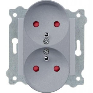 Gniazdo podwójne z uziemieniem i przesłonami torów prądowych (typ E) Srebrne 248/10E EXEN