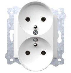 Gniazdo podwójne z uziemieniem (Typ E) i przesłonami torów prądowych 250V 16A Biały 246/01 EXEN