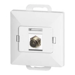 Gniazdo antenowe typu F, podynkowe. Umożliwia podłączenie jednego przewodu ze złączem typu F. Należy stosować wewnątrz pomieszczeń (IP20).