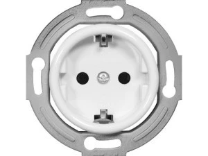 Gniazdo podtynkowe pojedyncze z uziemieniem (2P + Z typ – F/schuko). Konstrukcja gniazda uniemożliwia dzieciom wsunięcie przedmiotów do ich wnętrza, zapobiegając tym samym porażenia prądem. W mechanizmie gniazda zamontowana jest przesłona uchylająca się pod jednoczesnym naciskiem obu bolców wtyczki. Przeznaczone jest do montażu w puszcze podtynkowej, o średnicy 60 mm. Części zewnętrzne wykonane z tworzywa sztucznego w białym kolorze o lśniącej powierzchni. Rodzaj zacisku śruby. Osprzęt kompatybilny z ramkami z serii retro.