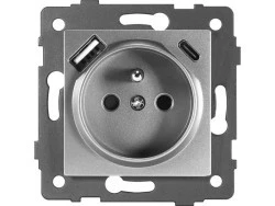 Gniazdo pojedyncze 2P+Z z gniazdem USB MODERN-Q, 16A-250V~, (5V, 2.1A / USB-A / USB-C)