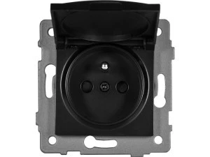 Gniazdo pojedyncze 2P+Z z klapką MODERN-Q, 16A-250V~, czarne