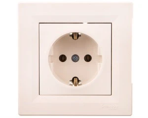 Gniazdo pojedyncze SCHUKO z uziemieniem w kolorze kremowym, serii Asfora, marki Schneider Electric, o numerze katalogowym EPH2900123. Długie i solidne pazury utrzymywane są za pomocą metalowych prowadnic w pozycji pionowej, co ułatwia montaż oraz zwiększa bezpieczeństwo podczas mocowania mechanizmu w puszce instalacyjnej. Zaciski w gniazdach zasilających oznaczone są w czytelny sposób oraz umieszczone są w jednej linii, dzięki czemu znacznie prostsze staje się ułożenie podłączonych kabli przed zamocowaniem gniazda w puszce instalacyjn ej (zmniejszenie efektu prężenia przewodów). Zwarta i solidna zabudowa mechanizmu minimalizuje ryzyko przypadkowego kontaktu z elementami pod napięciem i uniemożliwia wypadanie elementów nawet przy całkowitym odkręceniu śrub zacisków. Dodatkowo, solidna ramka montażowa wykonana z galwanizowanego metalu posiada nacięcia ułatwiające pozycjonowanie. Produkt może być instalowany w ramkach wielokrotnych. Asfora to pełna gama wysokiej jakości łączników i gniazd o eleganckim kształcie oraz szerokiej funkcjonalności. Dostepna jest w 6 kolorac h: biały, kremowy, aluminium, stal, brąz oraz antracyt, co pozwala stworzyć 36 kombinacji kolorystycznych. Prosta forma, szeroki asortyment oraz szybka i łatwa instalacja to zalety serii Asfora.
