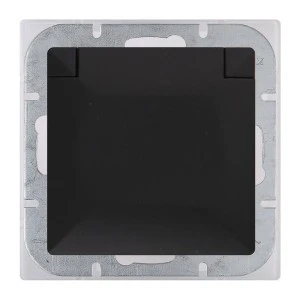 Pojedyncze gniazdo bryzgoszczelne z klapką, typu francuskiego, podtynkowe 2P+Z. Należy stosować wewnątrz pomieszczeń (IP20).
