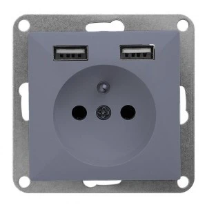 Pojedyncze gniazdo typu francuskiego, podtynkowe 2P+Z z ładowarką USB typu A (2xUSB-A, 2A, 5V). Dzięki wbudowanej ładowarce USB można w łatwy sposób naładować telefon lub tablet. Należy stosować wewnątrz pomieszczeń (IP20).