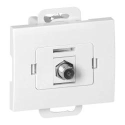 Pojedyncze gniazdo TV antenowe, typ F. Pozwala na podłączenie jednego odbiornika w systemach telewizyjnych, satelitarnych lub kablowych. Należy stosować wewnątrz pomieszczeń (IP20).