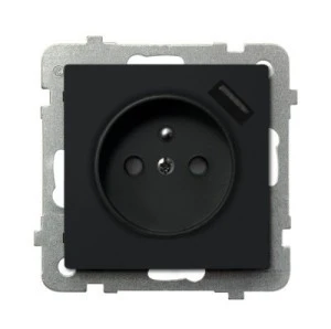 AS Gniazdo pojedyncze z uziemieniem z przesłonami torów prądowych, z ładowarką USB czarny metalik GP-1GZPUSB/m/33