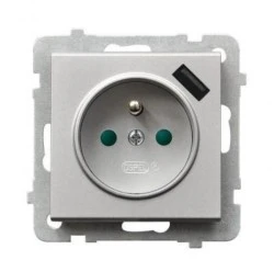 Gniazdo pojedyncze z uziemieniem z przesłonami torów prądowych, z ładowarką USB GP‑1RZPUSB/m/38