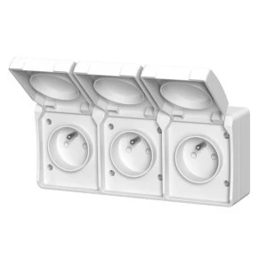 Gniazdo potrójne z uziemieniem natynkowe z klapką Aqua Plus IP44 białe / 40227
