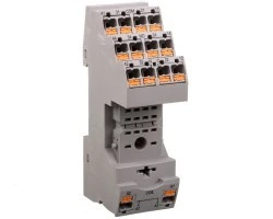 Gniazdo przekaźnika RIF-2..., do przekaźników przemysłowych z 2 lub 4 stykami przełącznymi, złącze push-in, z możliwością wetknięcia modułu wejściowego/przeciwzakłóceniowego, do montażu na NS 35/7,5