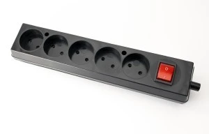 Gniazdo przenośne pięciokrotne 16A 2P 250V z wyłącznikiem czarne GN‑560WS