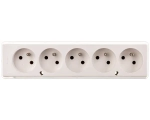 Danym tutaj produktem jest nowoczesne gniazdo. Jest to model typu przenośnego. Ten model ma łącznie pięć gniazd. Każde z nich zostało ustawione pod kątem. Każde ma także bolec uziemiający. Na pewno należy zwrócić uwagę na parametry elektryczne, przy jakich pracuje ten model. Produkt zadziała przy prądzie znamionowym równym 16A, a z kolei wartość napięcia znamionowego wynosi w tym przypadku 250V. Korpus tego modelu ma prostokątny kształt. Należy także dodać, że gniazdo zostało wyprodukowane z niezwykle trwałego, certyfikowanego tworzywa termoplastycznego. Niewątpliwą zaletą tego rodzaju materiału jest jego odporność na ścieranie, co ma realny wpływ na długi czas użytkowania produktu. Produktowi przypisano raczej niski stopień ochrony - IP20, co zapewnia ochronę przed ciałami obcymi o średnicy 12,5 mm i większymi. Ten model nie jest jednak dostatecznie zabezpieczony przed równie szkodliwą wilgocią.