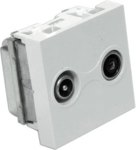 Gniazdo RTV końcowe 45x45 (gn.antenowe męskie/gn.antenowe żeńskie). Montaż przez zatrzaśnięcie na uchwycie UCHKP, OBUK lub RAMK.