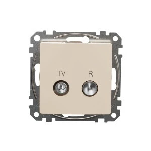 Gniazdo R/TV przelotowe (10dB), beżowy, to osprzęt serii Sedna Design & Elements marki Schneider Electric. Gniazdo R/TV przelotowe (10dB) ma lśniące wykończenie powierzchni w kolorze beżowym i posiada następujące wymiary: szerokość 73 mm, wysokość 73 mm, głębokość 34 mm , głębokość wystawania 14.6 mm. Gniazdo charakteryzuje się stopniem ochrony IP20. Do produkcji gniazda wykorzystano tworzywo termoplastyczne o zwiększonej odporności na promieniowanie UV. Produkt jest montowany podtynkowo. Uwaga: produkty Sedna Design & Elements nie są kompatybilne z serią Sedna!