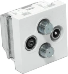 Gniazdo RTV-SAT podwójne końcowe 45x45 (gn.antenowe męskie/gn.antenowe żeńskie/ 2 x gn. typu F żeńskie). Gniazdo przeznaczone do współpracy z tunerem satelitarnym i z twardym dyskiem. Tuner z twardym dyskiem wymaga podłączenia dwóch kabli z sygnałem satelitarnym. Montaż przez zatrzaśnięcie na uchwycie UCHKP, OBUK lub RAMK.