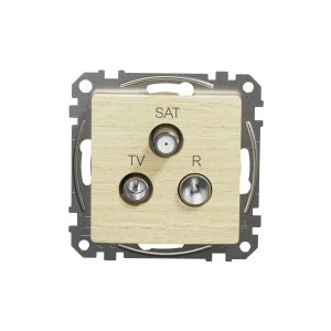 Gniazdo R/TV/SAT przelotowe (7dB), brzoza, efekt drewna, to osprzęt serii Sedna Design & Elements marki Schneider Electric. Gniazdo R/TV/SAT przelotowe (7dB) jest powlekane tworzywem w kolorze brzoza i posiada następujące wymiary: szerokość 73 mm, wysokość 73 mm, głębokość 41 mm, głębokość wystawania 17.4 mm. Gniazdo charakteryzuje się stopniem ochrony IP20. Do produkcji gniazda wykorzystano tworzywo termoplastyczne o zwiększonej odporności na promieniowanie UV, które doskonale imituje naturalne materiały. Produkt jest montowany podtynkowo. Uwaga: produkty Sedna Design & Elements nie są kompatybilne z serią Sedna!
