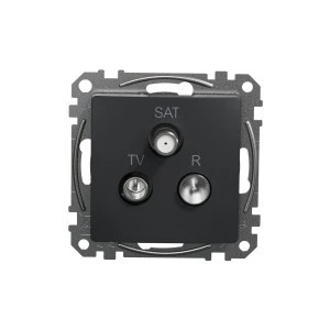 Gniazdo R/TV/SAT przelotowe (7dB), czarny antracyt, to osprzęt serii Sedna Design & Elements marki Schneider Electric. Gniazdo R/TV/SAT przelotowe (7dB) ma malowane wykończenie powierzchni w kolorze czarnego antracytu i posiada następujące wymiary: szerokość 73 mm, wyso kość 73 mm, głębokość 41 mm, głębokość wystawania 17.4 mm. Gniazdo charakteryzuje się stopniem ochrony IP20. Do produkcji gniazda wykorzystano tworzywo termoplastyczne o zwiększonej odporności na promieniowanie UV. Produkt jest montowany podtynkowo. Uwaga: produkty Sedn a Design & Elements nie są kompatybilne z serią Sedna!