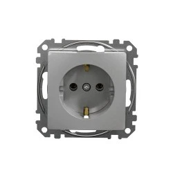 Sedna Gniazdo zasilające schuko, srebrne aluminium, to osprzęt serii Sedna Design & Elements marki Schneider Electric Gniazdo zasilające ma malowane wykończenie powierzchni w kolorze srebrnego aluminium i posiada następujące wymiary: szerokość 73 mm, wysokość 73 mm, głębokość 41 mm, głębokość wystawania 32 mm. Długość izolacji zdejmowanej z kabla to 13 mm. Gniazdo charakteryzuje się stopniem ochrony IP20 i zakresem mocy wynoszącym 3680 W. Do produkcji gniazda wykorzystano tworzywo termoplastyczne o zwiększonej odporności na promieniowanie UV. Produkt jest montowany podtynkowo i posiada zaciski śrubowe.