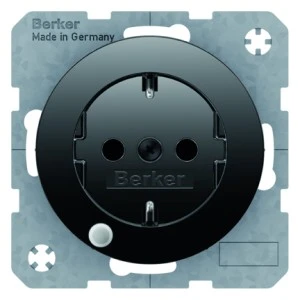 Gniazdo SCHUKO z diodą kontrolną LED Berker R.1/R.3 czarny połysk 41102045