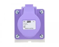 Gniazdo stałe 16A 3P 20-25V fioletowe z stopniem ochrony IP44. PCE robi trwałe produkt w dobrej cenie.