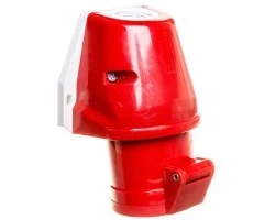 Gniazdo stałe 32A 3P+PE 380 do 415V 6h IP44 50 i 60Hz, Wielkość obudowy wielkość obudowy 92x94, Zadławienie: M25 z góry, Kolor indentyfikacyjny: czerwony RAL 3000, Izolator/Kontakty: Izolator z PA6 kontakty mosiężne, Przewód mm2 max 10,0 mm2, obudowa z poliamidu, elementy zewnętrzne elementy metalowe sprężyna klapki stal nierdzewna nity klapki mosiężny śruby zewnętrzne ocynkowane Inne: wprowadzenie kabla 1 x z góry (otwarte) i 1 x z dołu zaślepione klapka samozamykająca