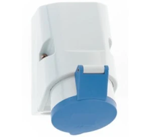 Gniazdo stałe TE 16A 6P+PE 230V 9h IP44 50 i 60Hz, Wielkość obudowy wielkość obudowy 126x83, Zadławienie: M25, Kolor indentyfikacyjny: niebieski RAL 5015, Izolator/Kontakty: wysokotermostabilny izolator, kontakty niklowane, Przewód mm2 max 4,0 mm2, O