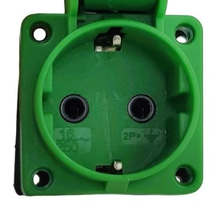 Zielone gniazdo tablicowe 230V wykorzystywane m.in. w rozdzielnicach budowlanych. Dzięki wysokiej klasie szczelności IP54, gniazdo znajdzie zastosowanie w wewnętrznych i zewnętrznych instalacjach, a jakość wykonania zapewnia długotrwałą wytrzymałość. Gniazdo posiada uziemienietypu F (SCHUKO).