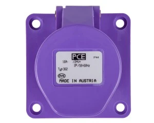 Gniazdo tablicowe fioletowe 16A 2P IP44 24V. PCE robi dobre jakościowo produkty z trwałego tworzywa.