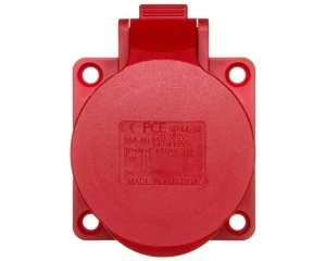 Gniazdo tablicowe czerwone 16A 5P IP44 400V. PCE robi dobre jakościowo produkty z trwałego tworzywa.