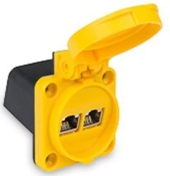 Gniazdo tablicowe data RJ45 z klapką i uszczelką (2 otwory) 2 x moduł RJ45 (kat. 6A) 12k452‑0e