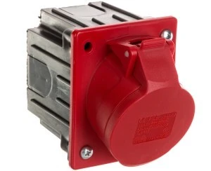 Gniazdo tablicowe skośne czerwone z puszką 16A 5P IP44 400V. PCE robi dobre jakościowo produkty z trwałego tworzywa.