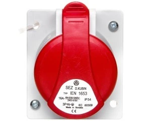 Dobra jakość wykonania i zastosowanego tworzywa przy zachowaniu przystępnej ceny. Gniazdo tablicowe skośne 5P 16A 400V czerwone podtynkowe z puszką IP44