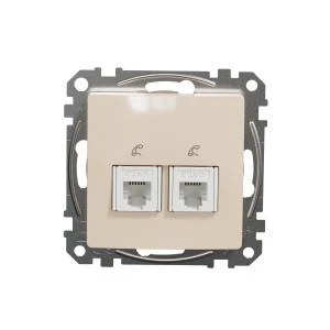 Gniazdo telefoniczne podwójne RJ11, beżowy, to osprzęt serii Sedna Design & Elements marki Schneider Electric. Gniazdo telefoniczne ma lśniące wykończenie powierzchni w kolorze beżowym i posiada następujące wymiary: szerokość 73 mm, wysokość 73 mm, głębokość 37 mm, głęb okość wystawania 13 mm. Gniazdo charakteryzuje się stopniem ochrony IP20. Do produkcji gniazda wykorzystano tworzywo termoplastyczne o zwiększonej odporności na promieniowanie UV. Produkt jest montowany podtynkowo. Uwaga: produkty Sedna Design & Elements nie są kompatyb ilne z serią Sedna!