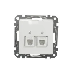 Gniazdo telefoniczne podwójne RJ11, białe, to osprzęt serii Sedna Design & Elements marki Schneider Electric. Gniazdo telefoniczne ma lśniące wykończenie powierzchni w kolorze białym i posiada następujące wymiary: szerokość 73 mm, wysokość 73 mm, głębokość 37 mm, głębok ość wystawania 13 mm. Gniazdo charakteryzuje się stopniem ochrony IP20. Do produkcji gniazda wykorzystano tworzywo termoplastyczne o zwiększonej odporności na promieniowanie UV. Produkt jest montowany podtynkowo. Uwaga: produkty Sedna Design & Elements nie są kompatybil ne z serią Sedna!