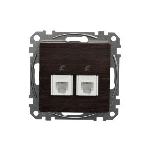 Gniazdo telefoniczne podwójne RJ11, wenge, efekt drewna, to osprzęt serii Sedna Design & Elements marki Schneider Electric. Gniazdo telefoniczne ma lśniące wykończenie powierzchni w kolorze wenge i posiada następujące wymiary: szerokość 73 mm, wysokość 73 mm, głębokość 37 mm, głębokość wystawania 13 mm. Gniazdo charakteryzuje się stopniem ochrony IP20. Do produkcji gniazda wykorzystano tworzywo termoplastyczne o zwiększonej odporności na promieniowanie UV, które doskonale imituje naturalne materiały. Produkt jest montowany podtynkowo. Uwaga: produkty Sedna Design & Elements nie są kompatybilne z serią Sedna!