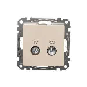 Gniazdo TV/SAT końcowe (4dB), beżowy, to osprzęt serii Sedna Design & Elements marki Schneider Electric. Gniazdo TV/SAT końcowe (4dB) ma lśniące wykończenie powierzchni w kolorze beżowym i posiada następujące wymiary: szerokość 73 mm, wysokość 73 mm, głębokość 34 mm, gł ębokość wystawania 17.4 mm. Gniazdo charakteryzuje się stopniem ochrony IP20. Do produkcji gniazda wykorzystano tworzywo termoplastyczne o zwiększonej odporności na promieniowanie UV. Produkt jest montowany podtynkowo. Uwaga: produkty Sedna Design & Elements nie są komp atybilne z serią Sedna!